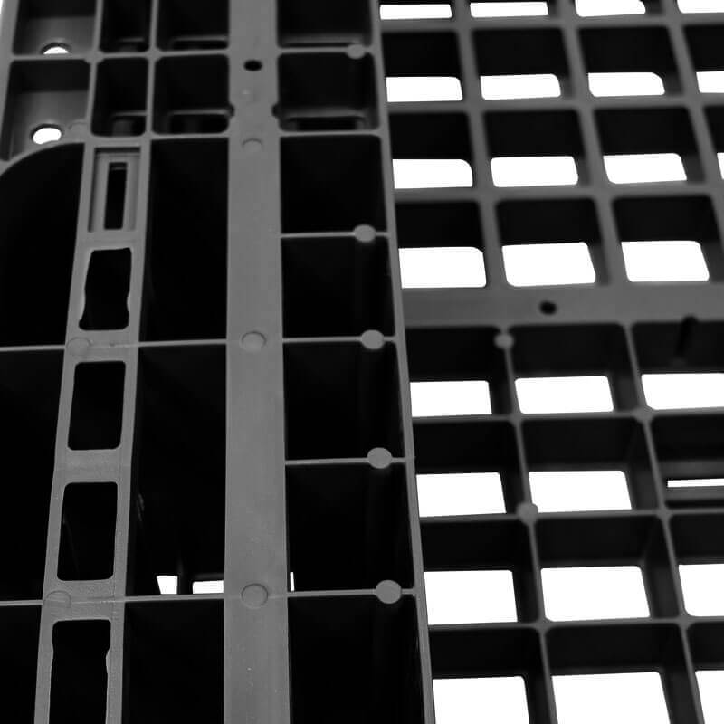 可以采用低壓高密度聚乙烯生產的塑料托盤,純原料生產的塑料托盤可以耐受零下30℃的低溫。采用擠出--吹塑一次成型的高強度吹塑托盤,一般均會采用HMWHDPE塑料進行吹塑成型,其重均分子量達到35~40萬左右;這種塑料原料具有對環境溫度的較強適應能力,可以在-40~40℃環境中穩定使用,是需要高強度使用環境的首當塑料托盤,由于這種高強度吹塑托盤選擇的塑料原料成本高,加工過程技術難度較高,產品的使用壽命特別長,可以達到5~10年。雖然一次購買時價格會較高,但是綜合使用成本確是較低的。需要高強度使用時,可以選擇這種高強度的吹塑托盤。